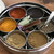 1. Masala Dabba mit Deckel Ø 19 x 7,5 cm inkl. Ganze Gewürze: Senfkörner, Kreuzkümmelsamen, Zimt, Nelken, grün & braun Kardamom, Chili & Lorbeer. Gemahlene Gewürze: Koriander, Kreuzkümmel, Chili & Kurkuma.